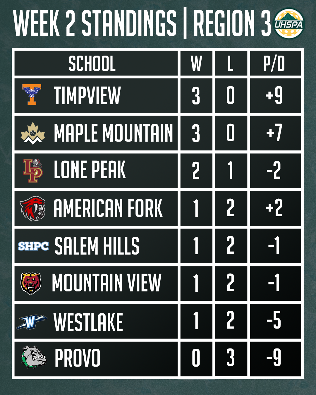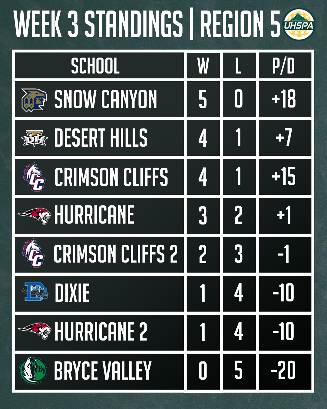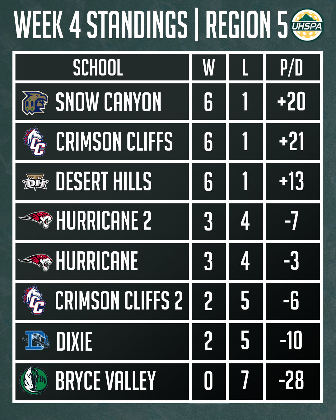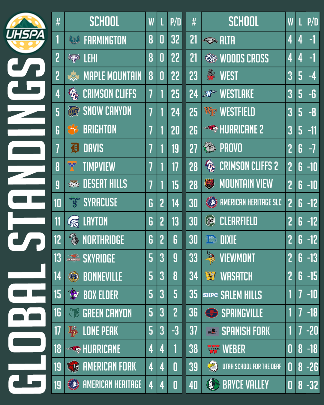 UHSPA scores Win/Loss first, then head to head point differential, and then overall point differential.